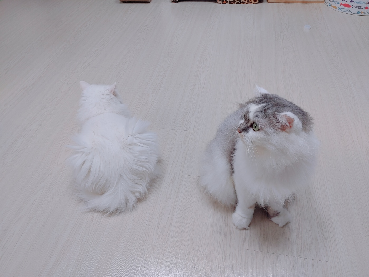 둘 다 사이가 좋은 듯, 좋지 않은 듯하는 우리 집 냥이.